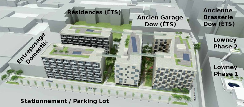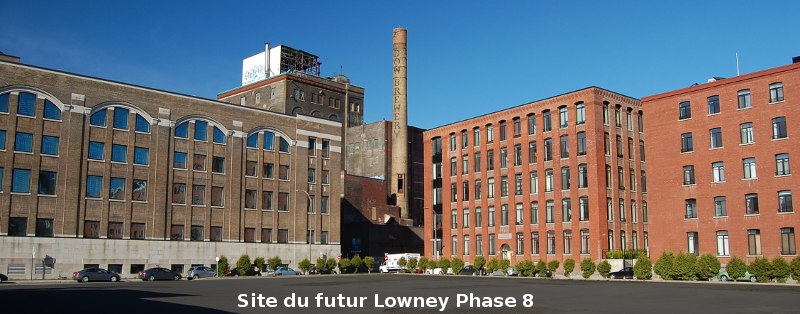 Le Lowney Phase 8 (ou plutôt phases 8-11) est l'extension prévue du projet de condos urbains Lowney de Prével. La phase 8 occupera le site actuel d'un bâtiment industriel et un stationnement de surface, ainsi que le site historique du Diamond Court. Les environ 500 unités consisteront principalement d'un chambre à coucher. La première phase de développement est prévue pour l'automne 2011 (mais sera probablement accelérée). | Lowney Phase 8 (or rather phases 8-11) is the proposed continuation of Prével's Lowney condo project in Griffintown. Phase 8 would occupy the site of a current light industrial building and surface parking lot. It would equally occupy the site of the historic Diamond Court. The roughly 500 units will principally be single-bedroom. The initial phase of development is scheduled for Fall 2011 (but will likely be accelerated significantly). | |
