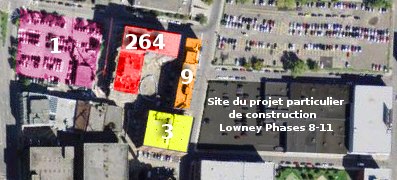 ![]() | Who's renouncing their right to vote? Lowney Phase 1: 9 (64 unités) Lowney Phase 2: 3 (69 unités) Lowney Phase 3-4: 264 (235 unités) Lowney Phase 5-7: 1 (Sous/Under construction) | |