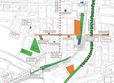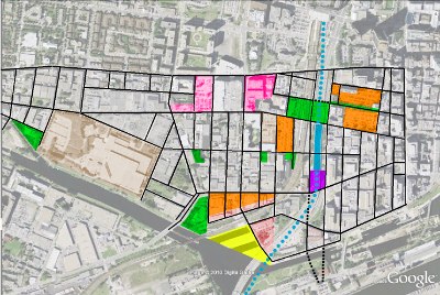 Télécharger la carte ci-droite, le modifier selon vos plans, résumer les idées et envoyer le tout à design@griffintown.org. Download the map at right, modify it to include your plans, summarize the ideas and send everything to design@griffintown.org. | |